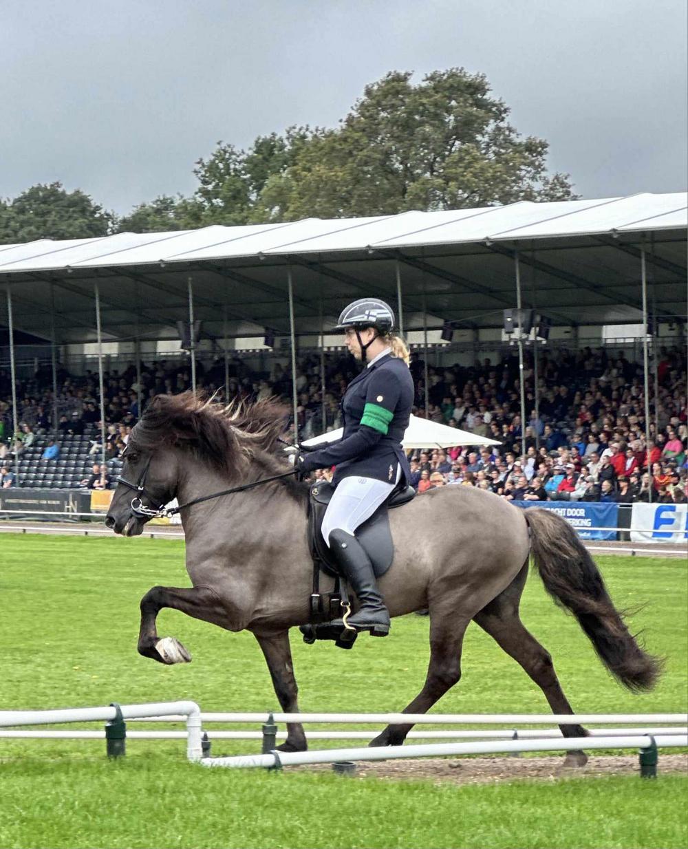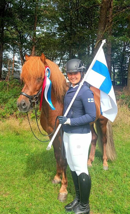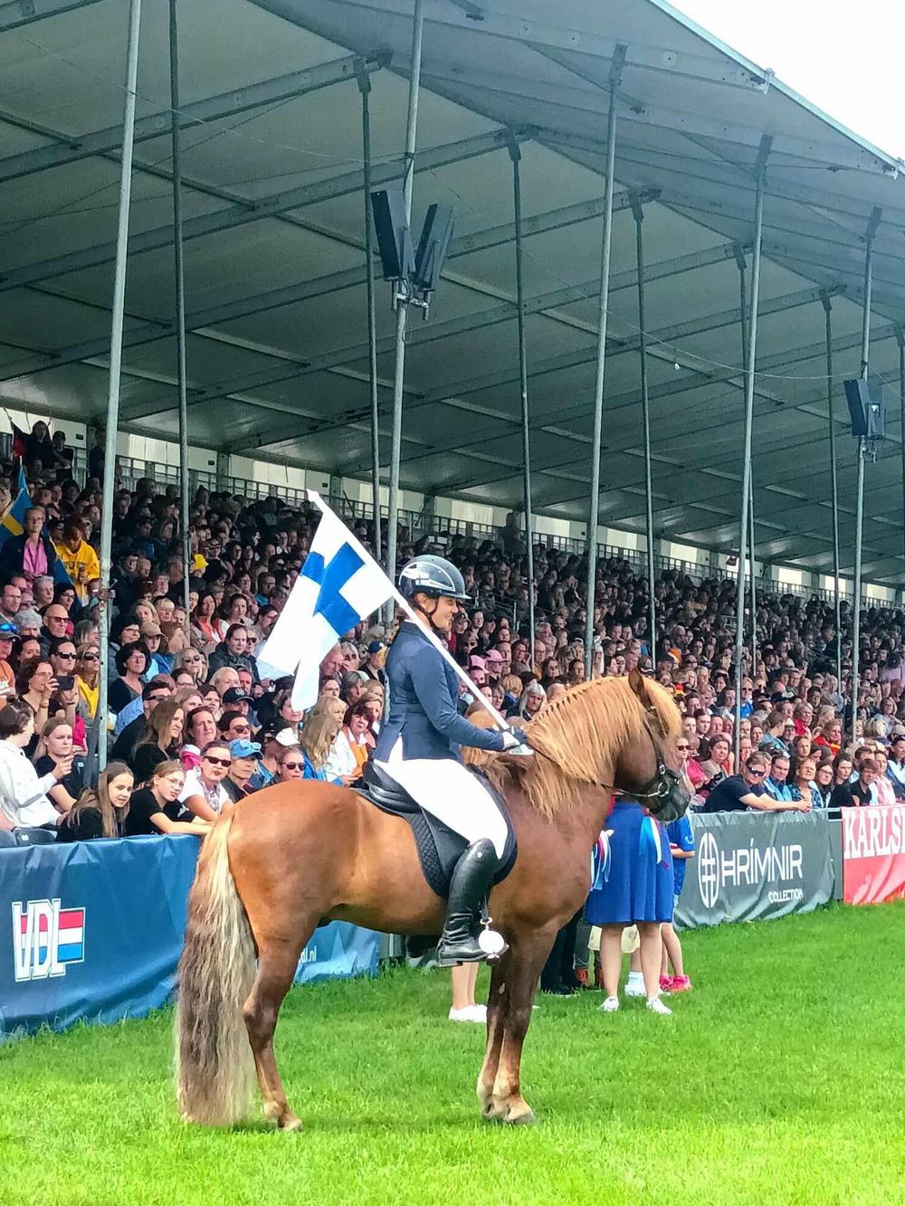 MM-kilpailut huipentuvat aina sunnuntain finaaleihin. Suomalaisittain viimeinen kisapäivä oli jännittävä, kun nuori ratsastajamme Miina Sarsama hevosella Freir fra Kaakkola starttasi nuorten nelikäynnin A-finaalissa. Finaali oli tasainen ja kaikkien ratsukoiden tulokset olivat lopulta yhden pisteen sisällä. Miina ratsasti hienosti ja energisesti Freirin eli Reiskan kanssa ensimmäisen hitaan töltin osion. Ravissa tuli aivan osion lopussa valitettava rikko, kun toinen ratsukko ratsasti hyvin lähellä. Seuraava osio eli käynti ei ole Reiskan vahvin askellaji ja siinä pisteet jäivätkin muista. Laukka taas onnistui hyvinja viimeisen osion lisätty töltti sujui niin hienosti, että tuomarit arvostelivat sen koko finaalin korkeimmin pistein. Yhteispisteiksi Miina ja Reiska saivat lopulta 6.50, millä he olivat lopulta MM-sijalla 6. Tämä on nuoren ratsukon uralla hieno saavutus! Onnea Miina ja Freir!