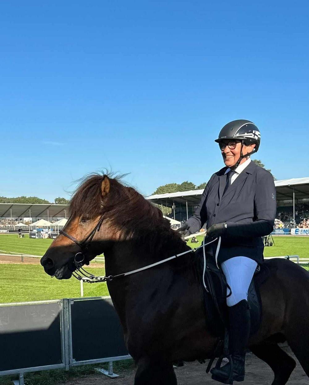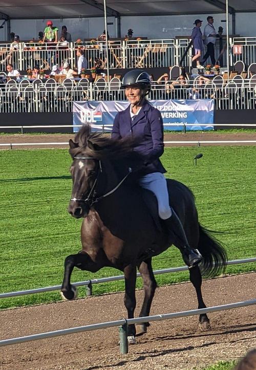 Perjantai oli kisaviikon kuumin päivä, joten Maija Hahlin oli verrattain tyytyväinen siihen, että hänen suoritusvuoronsa hevosensa Darri frá Hjarðartúni kanssa oli jo aikaisin aamulla T2 -luokassa. Maija ja Darri tekivät tasaisen siistin suorituksen ja saivat pisteet 6.40 ja heidän sijoituksensa oli 24. Maijan valmentajana on jo vuosia toiminut ruotsalainen Vignir Jonasson ja hän valmensi Maijaa myös MM-kilpailuissa.