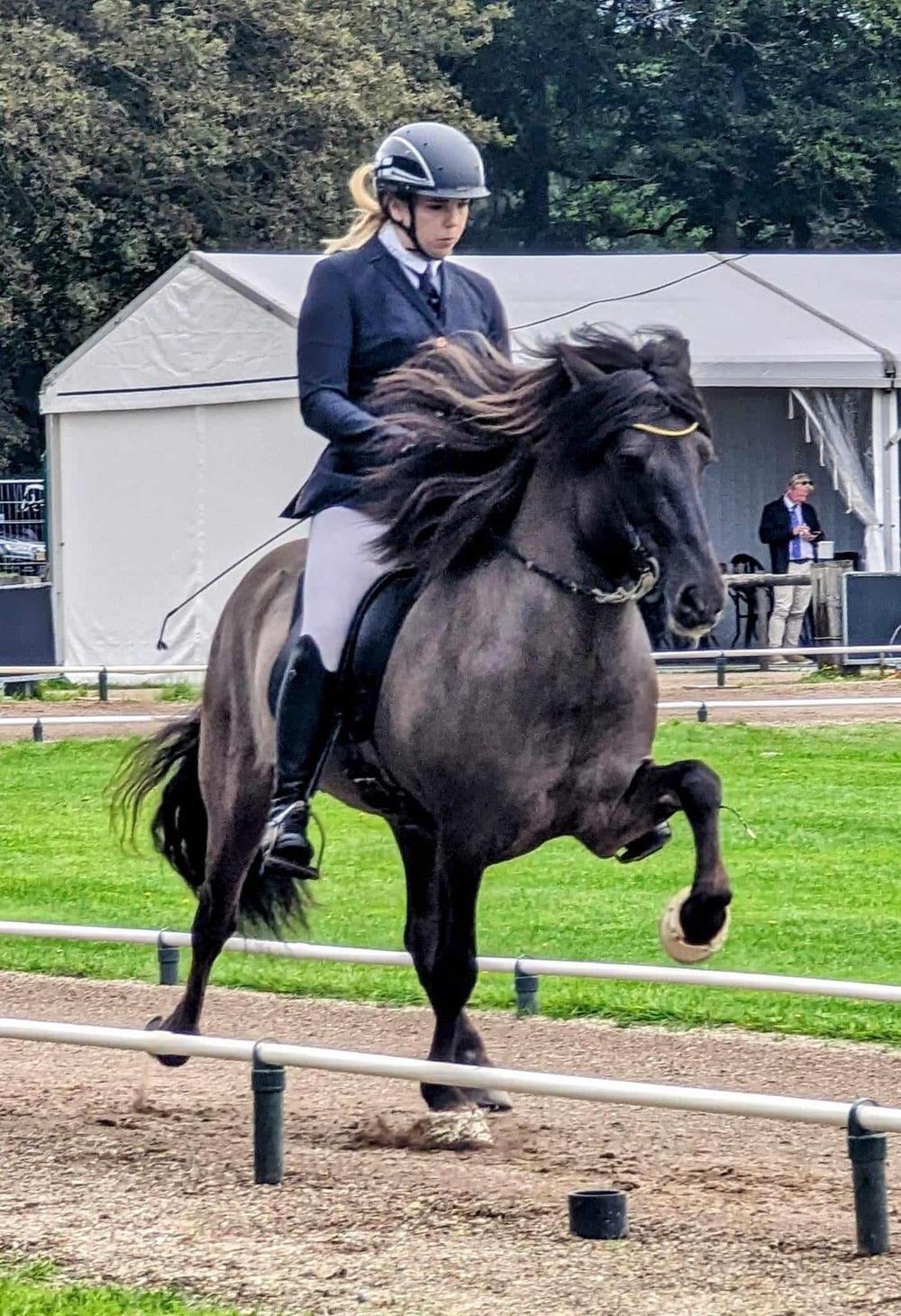 ”Darri tuntui rennolta ja eteenpäin pyrkivältä ja pystyin hyvin ratsastamaan häntä eteen. Kun tulimme kisaovaalille, tapahtui jotain, mikä sai Darrin jännittymään ja rauhattomaksi ja minun piti rauhoitella häntä. Sain kuitenkin kuulla, että siitä huolimatta suoritus näytti hienolta. Tiedän, että pystymme kyllä parempaankin”, kuvailee Maija hänen ja Darrin suoritusta.