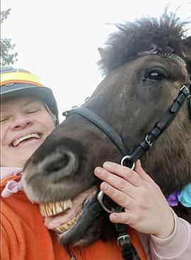 Olen 45-vuotias, ja asun eteläisessä Sipoossa kahden koiran ja kolmen kissan kanssa. Tällä hetkellä työskentelen resurssiopettajana yläkoulussa. Lasten ja nuorten kanssa työskentely onkin minulle sydämenasia, ja olen ollut onnekas saadessani jo vuosia opettaa heitä myös ratsastamaan.